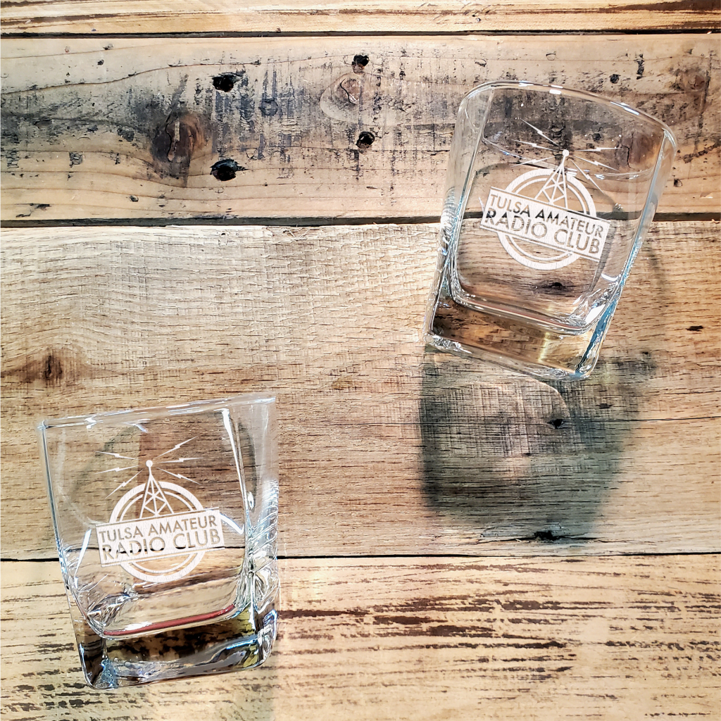 Two 11oz. Rocks Glasses laser engraved with TARC Logo. Personalized Logo Only, Logo & Call Sign, Logo, Call Sign and Name Locations Logo on Both, Call Sign On Both, Logo On Decanter and Call Sign on Glasses